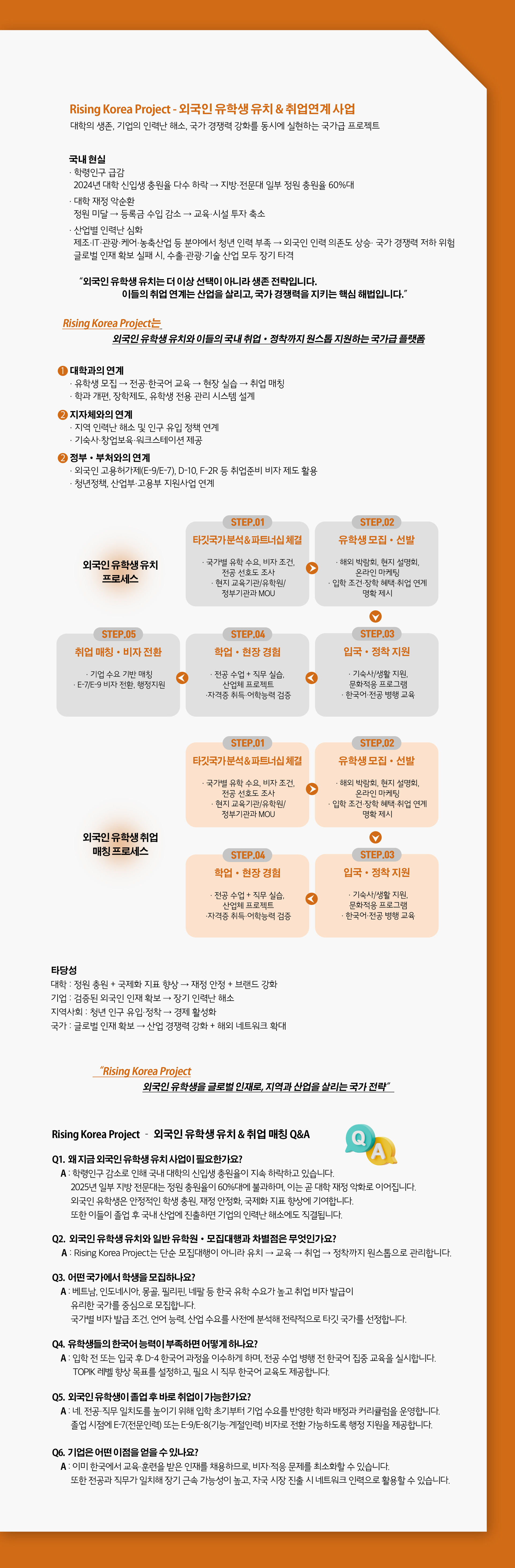 외국인 유학생 유치 및 취업 연계